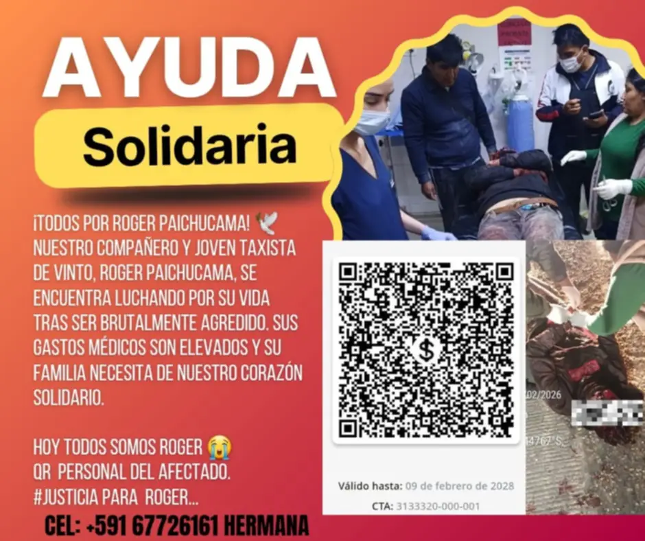 Un joven taxista fue víctima de un violento atraco la tarde del domingo en el departamento de Cochabamba. La agresión le provocó graves lesiones en el cráneo y el rostro, por lo que deberá someterse a varias cirugías reconstructivas. Su familia pide ayuda solidaria para cubrir los gastos médicos y conseguir donadores de sangre.
