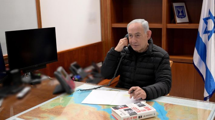 «El presidente y su equipo de seguridad nacional continuarán monitoreando de cerca la situación durante todo el día», declaró Leavitt. En tanto, la oficina de Netanyahu publicó la foto en la que se le ve hablando por teléfono en su despacho con un mapa de la región sobre la mesa, una carpeta de folios y el libro ‘Aliados en guerra’, sobre las potencias aliadas durante la Segunda Guerra Mundial (1939-1945).