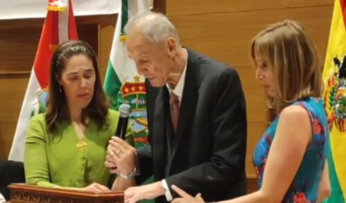 Araníbar agradeció el homenaje, en el acto que contó con la presencia del presidente de Diputados, Roberto Castro; y del diputado Juan del Granado, quien valoró el aporte del diplomático, incluso, arriesgando su propia vida.