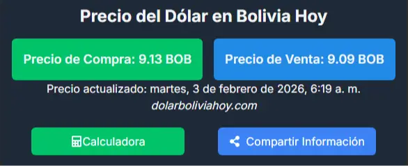 Por otro lado, el portal bolivianblue.net, que actualiza sus cifras en tiempo real cada 15 minutos, reporta este martes una cotización inversa: Bs 9,12 para la compra y Bs 9,09 para la venta, con una brecha más ajustada entre ambos valores.