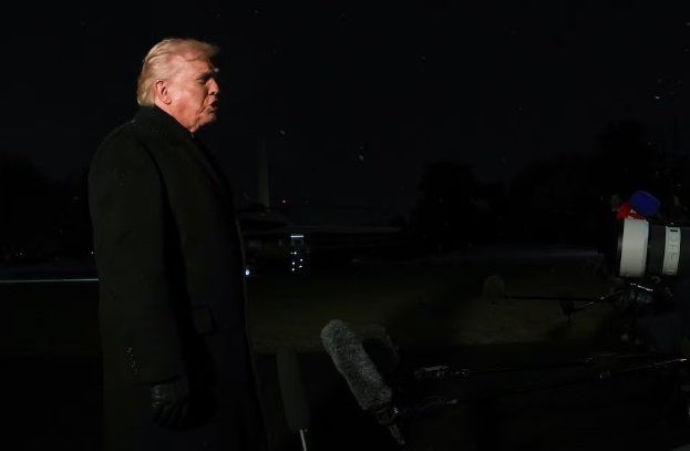 El presidente de Estados Unidos, Donald Trump, habla con los medios antes de abordar el Marine One para viajar a Florida desde el Jardín Sur de la Casa Blanca en Washington (REUTERS/Leah Millis)