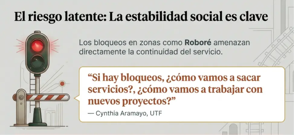 Ante amenazas de bloqueos en zonas como Roboré, Aramayo fue enfática al señalar que este tipo de medidas perjudican directamente el desarrollo.