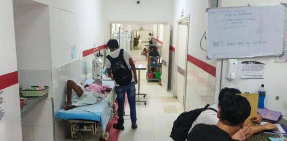 En el Hospital municipal de segundo nivel del Plan Tres Mil, en la capital cruceña, médicos denuncian que tienen problemas de hacinamiento, lo que provoca que los pacientes tengan que ser atendidos en los pasillos ante la falta de espacio
