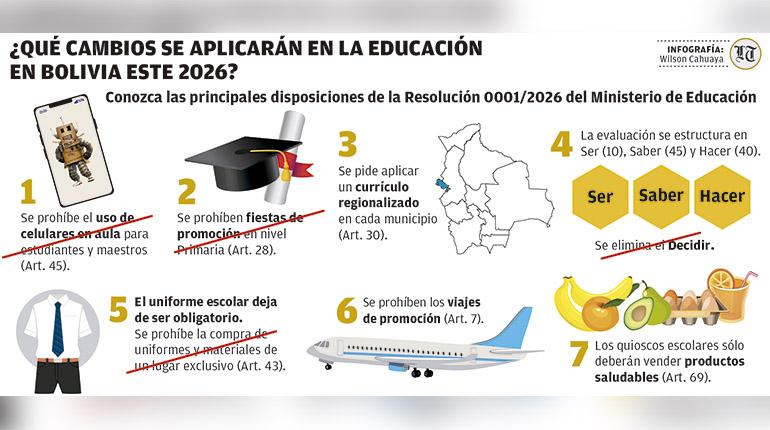 Con el inicio de clases previsto para este lunes, entra en vigencia la Resolución Ministerial N° 0001/2026, una norma que marca varios cambios en el funcionamiento de las unidades educativas del país.
