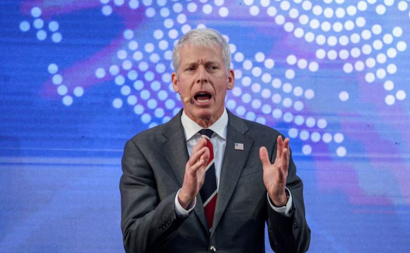 El secretario de Energía de EEUU, Chris Wright, habla con los medios de comunicación en Caracas (REUTERS/Leonardo Fernández Viloria)