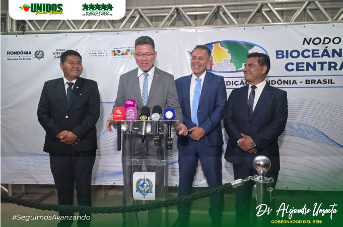 El gobernador del Beni, Alejandro Unzueta, junto a su similar de Oruro, Jhonny Vedia, participan del 2do Encuentro Nodo Bioceánico Central que se inauguró el miércoles en Porto Velho, Brasil, con el objetivo central de convertir esa región en el granero del mundo por las riquezas naturales que posee para abastecer los mercados asiáticos.