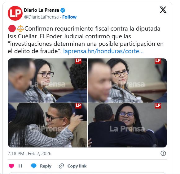 La Justicia de Honduras ordenó el lunes (02.02.2026) la captura de la diputada opositora Isis Cuéllar y el exsecretario de Desarrollo Social (Sedesol), José Carlos Cardona, a quienes el Ministerio Público (Fiscalía) acusa de fraude por el supuesto desvío de más de más de 227.900 dólares de fondos públicos.