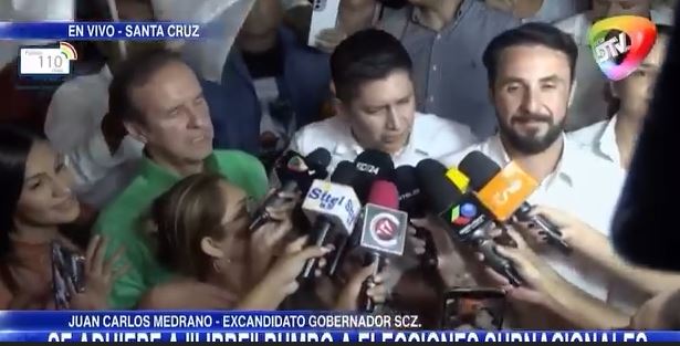 En el anuncio del respaldo también estuvo presente el jefe nacional de la alianza LIBRE, Jorge “Tuto” Quiroga, quien agradeció públicamente el apoyo de Medrano y cuestionó su inhabilitación. “Juan Carlos era un contendiente de nivel y la injusticia no fue solo contra él, sino contra la gente que lo respalda. Todos tenemos el derecho a ser elegidos”, manifestó.