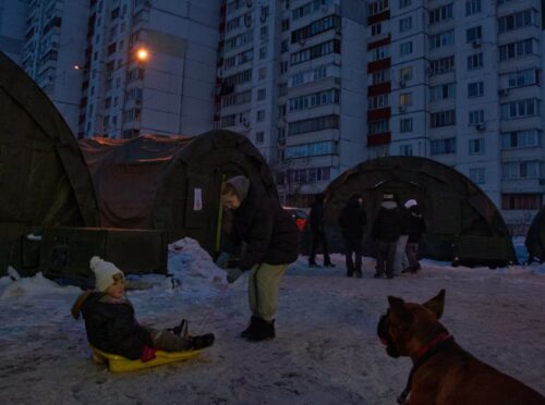 Las autoridades de Kiev han instalado cientos de tiendas de campaña por toda la ciudad donde la población puede calentarse y conseguir comida y bebida caliente. El alcalde Klitschko instó a quienes tengan un lugar cálido donde ir a que abandonen temporalmente la ciudad, reconociendo que el sistema de calefacción urbana centralizado ha sufrido daños de consideración y que la recuperación resulta compleja ante la continuidad de las hostilidades. Polonia y otros países europeos han enviado generadores eléctricos y equipos de calefacción para paliar la emergencia, pero la asistencia resulta insuficiente frente a la magnitud del desafío.