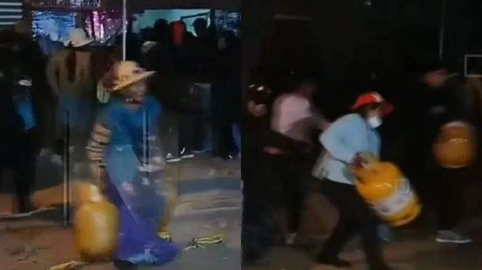 Tras la intervención policial, personas que fueron enfrentadas lograron ingresar para recuperar las garrafas de un galpón. Varias personas salieron del mismo cargando de a dos los cilindros de GLP, varios de ellos completamente nuevos.