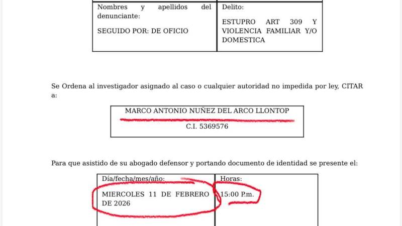 Santa Cruz. La Fiscalía lo citó en calidad de denunciado, instancia que también solicitó que se active la respectiva alerta migratoria.