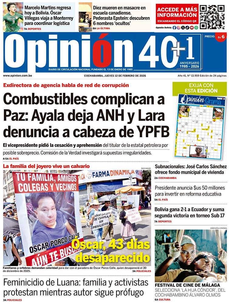 Fuente: El Deber, El Día, Zona Norte, La Palabra, La Razón, El Alteño, La Prensa, La Estrella del Oriente, El Mundo, Los Tiempos, La Voz, Contraparte, Andaluz, Correo del Sur, El País, El Periódico, El Diario, Amitel Pres, Opinión, Caja Negra, Novavox, La Patria.