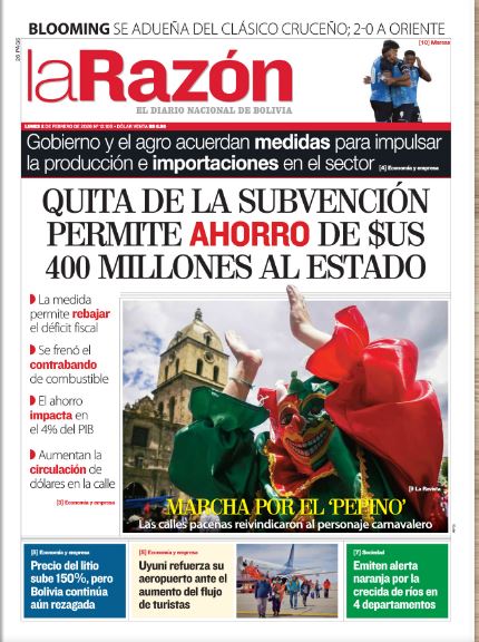 Fuente: El Deber, El Día, Zona Norte, La Palabra, La Razón, El Alteño, La Prensa, Ahora El Pueblo, La Estrella del Oriente, El Mundo, Los Tiempos, La Voz, Contraparte, Andaluz, El Potosí, Correo del Sur, El País, El Periódico, El Diario, Amitel Pres, Opinión, Caja Negra, Novavox.