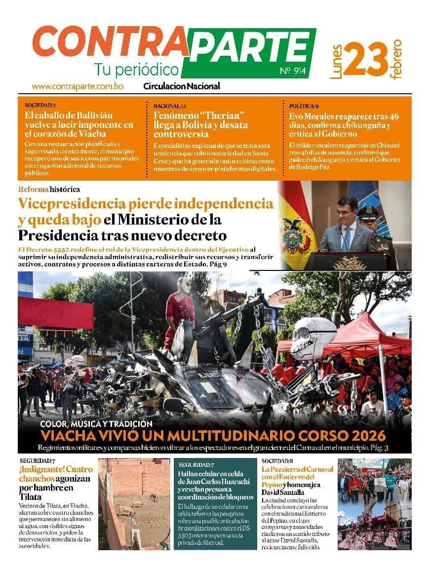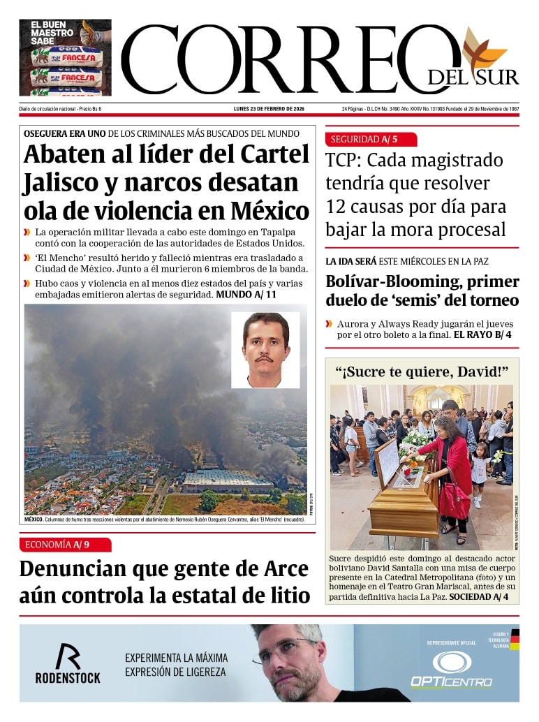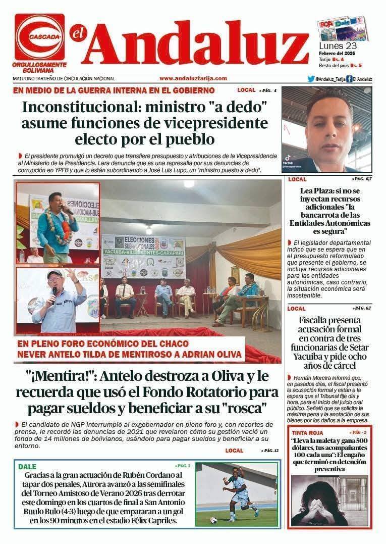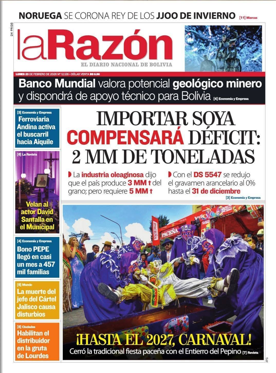 Portadas de los periódicos de Bolivia del lunes 23 de febrero del 2026