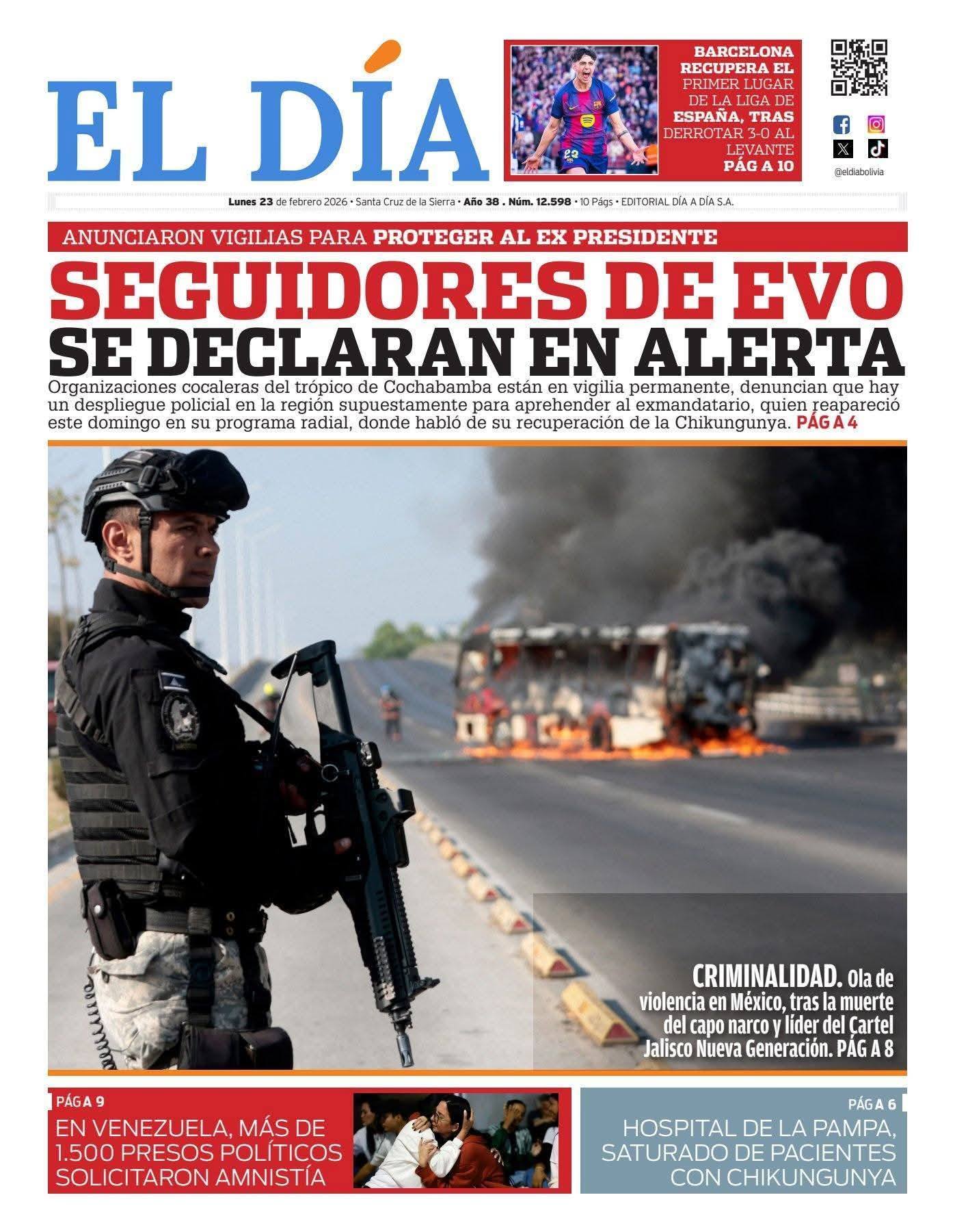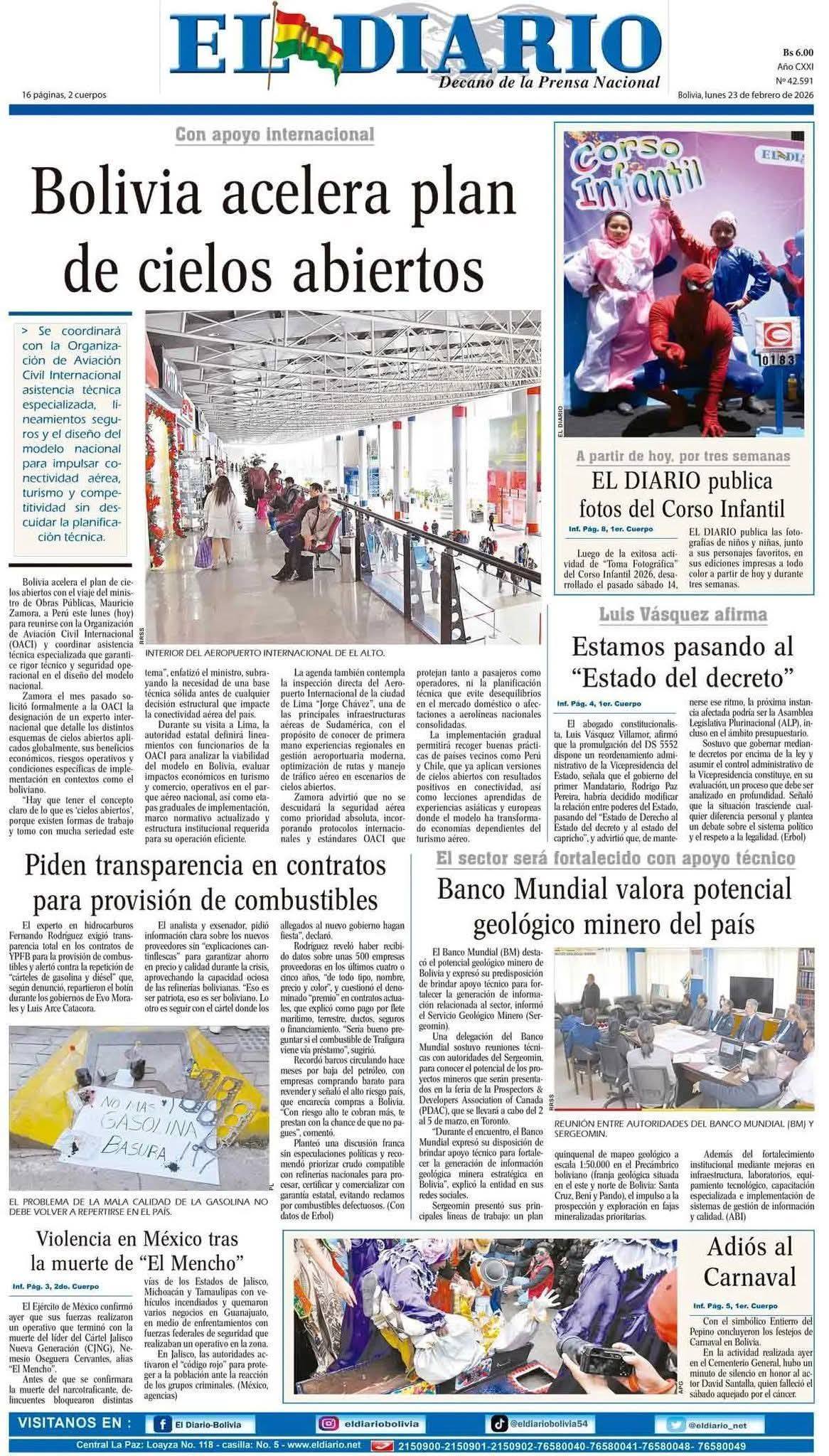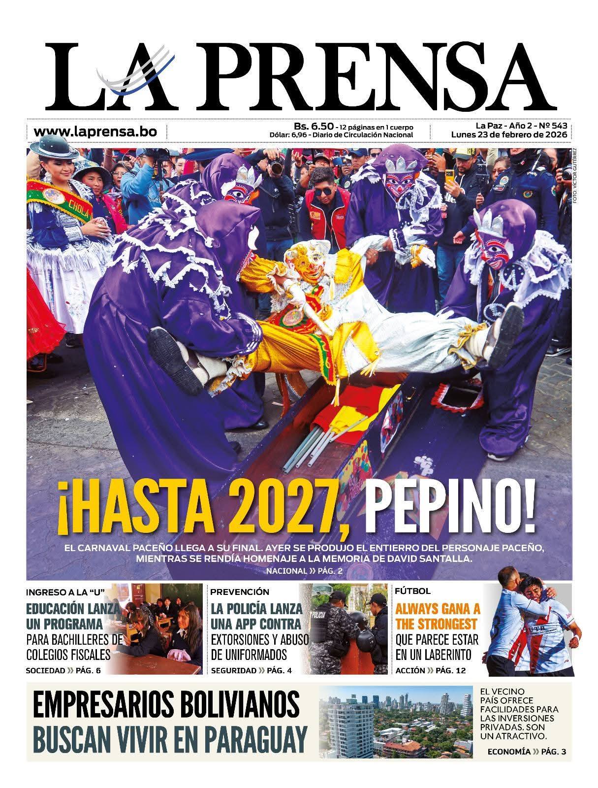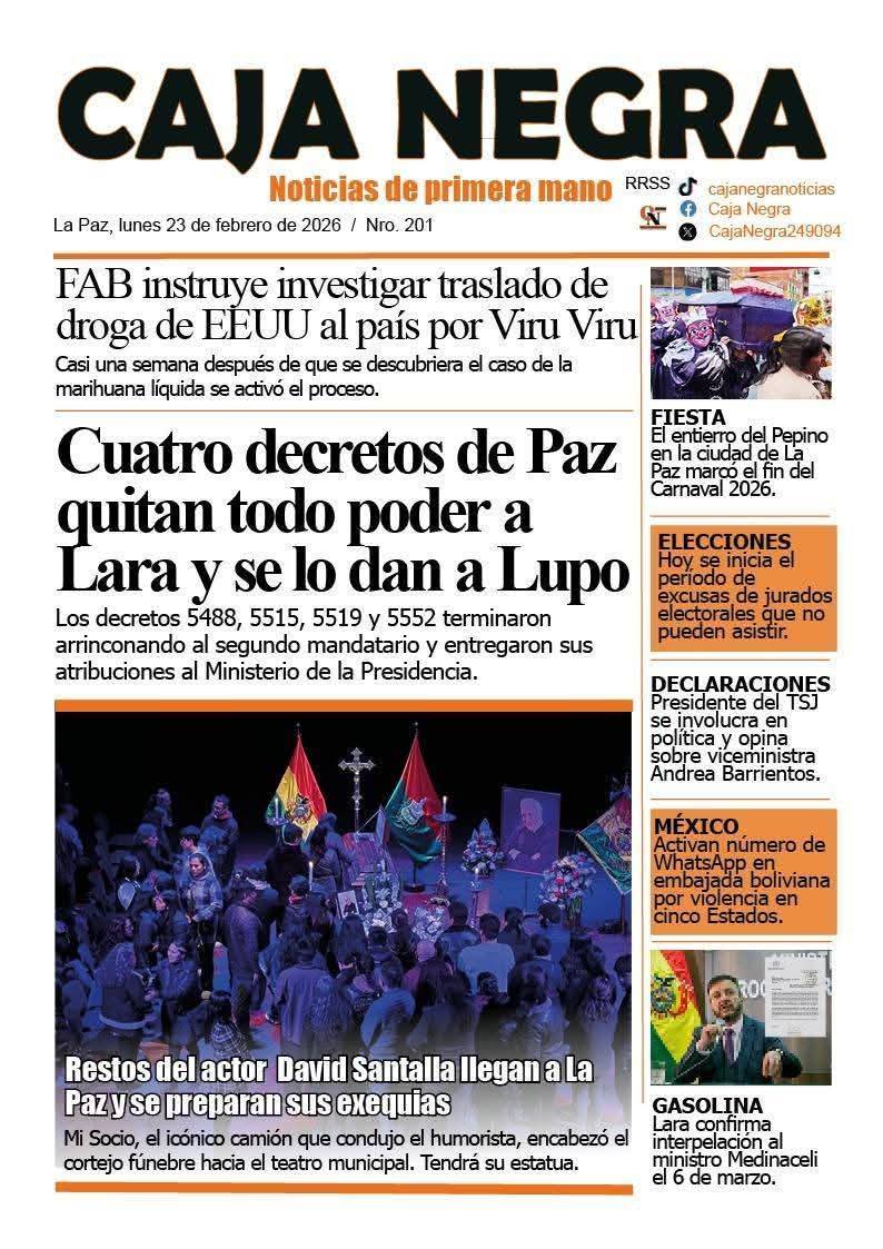 Portadas de los periódicos de Bolivia del lunes 23 de febrero del 2026