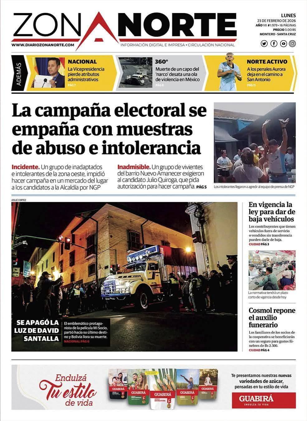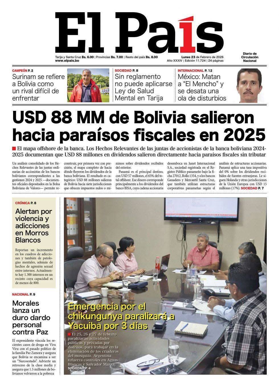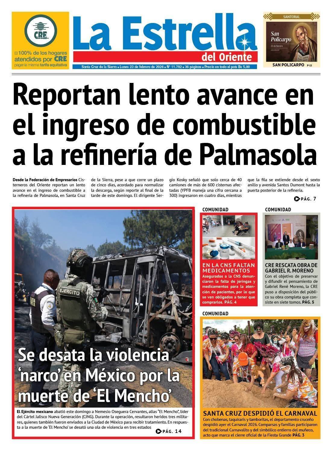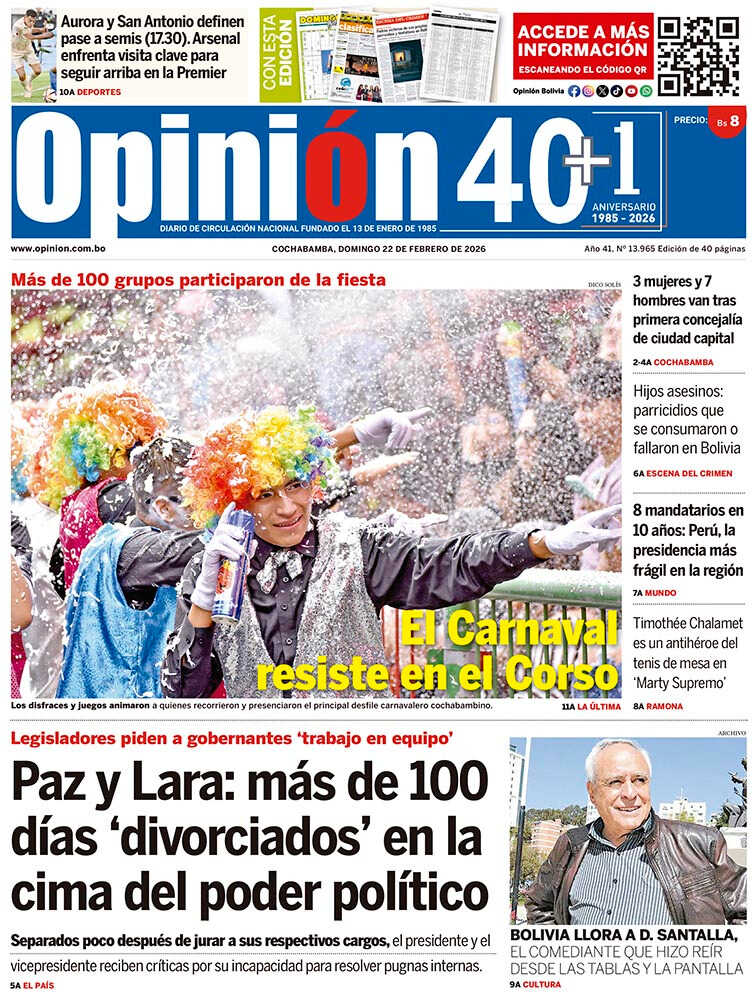 Portadas de los periódicos de Bolivia del lunes 23 de febrero del 2026