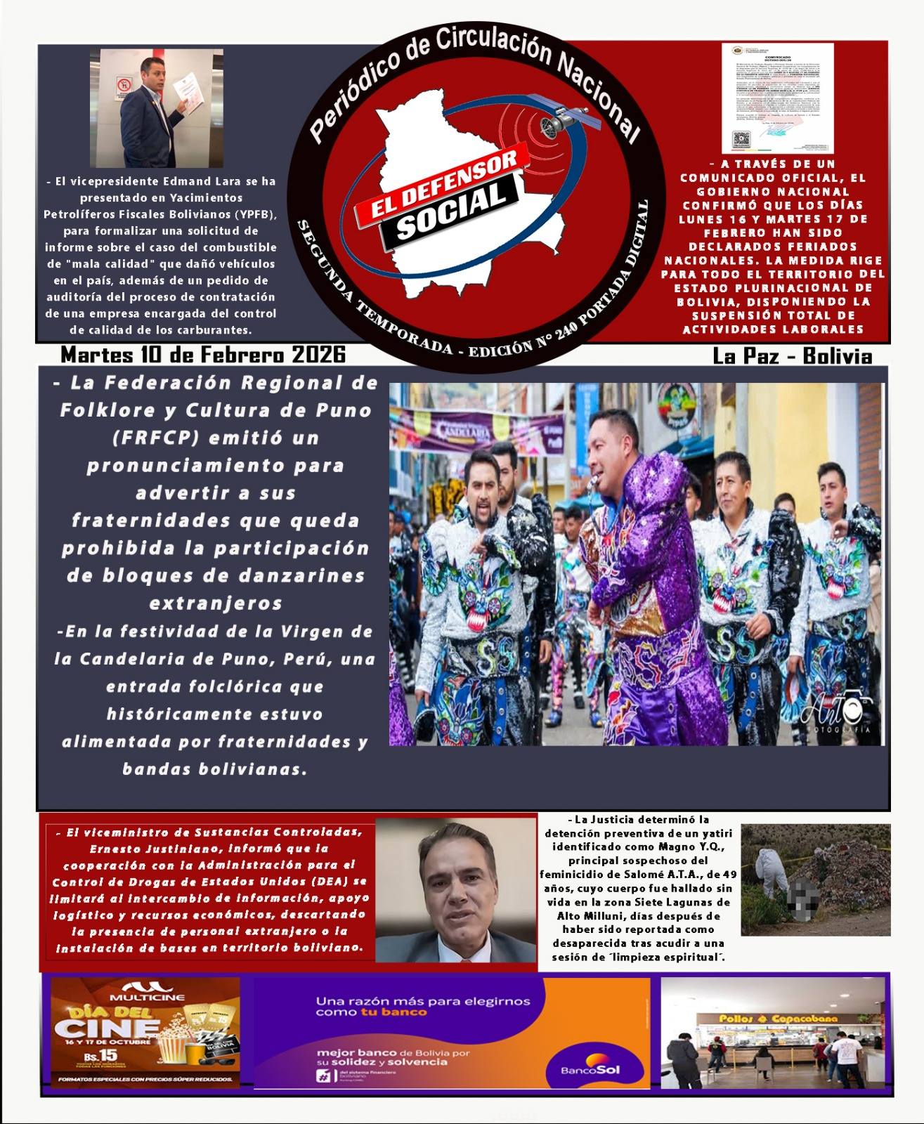 Fuente: El Deber, El Día, Zona Norte, La Palabra, La Razón, La Prensa, Ahora El Pueblo, La Estrella del Oriente, El Mundo, Los Tiempos, La Voz, Contraparte, Andaluz, El Potosí, Correo del Sur, El País, El Periódico, El Diario, Amitel Pres, Opinión, Caja Negra, Novavox, La Patria.