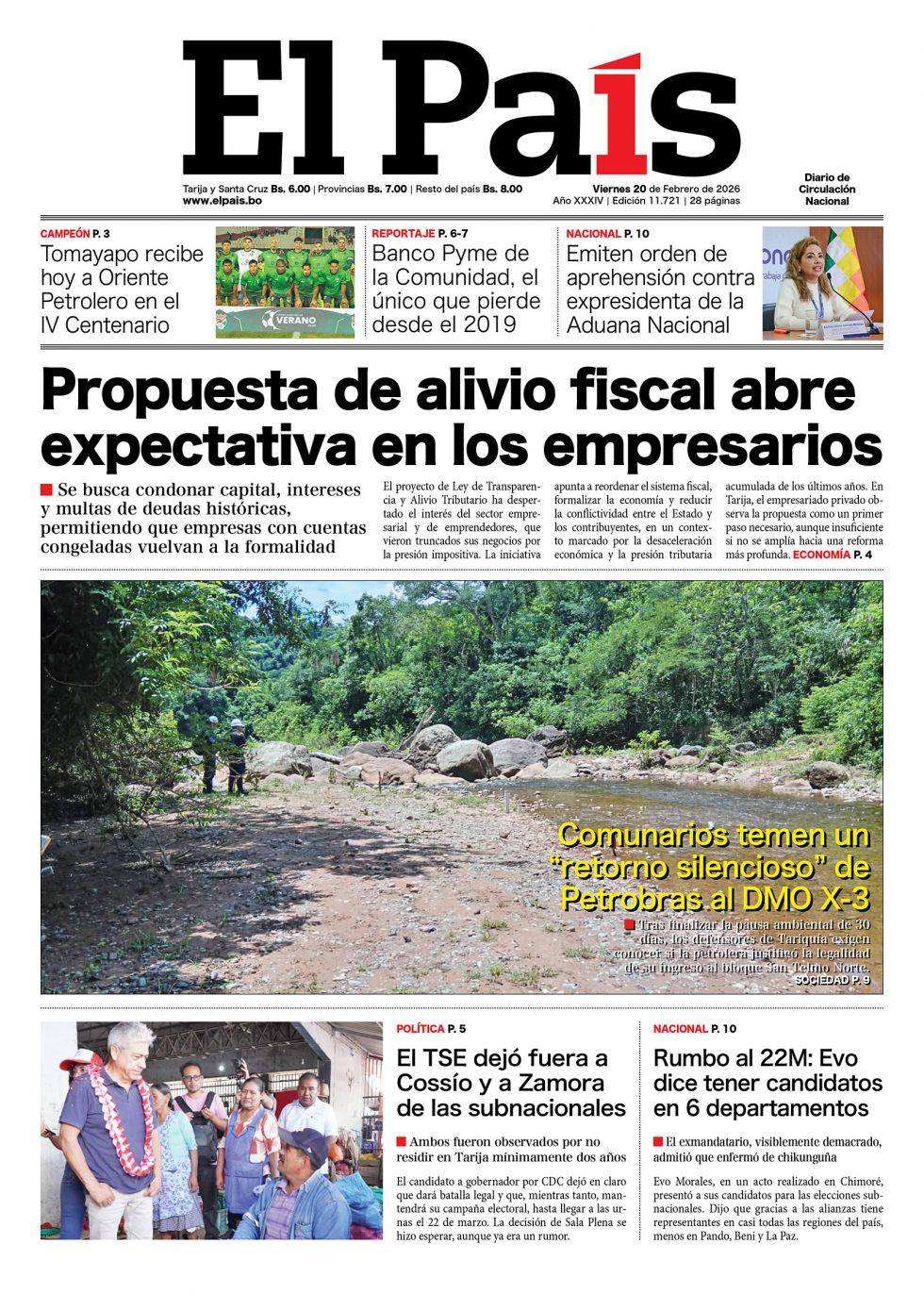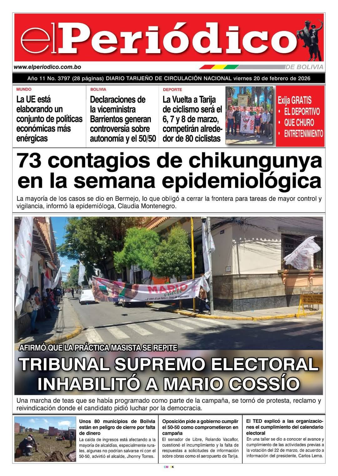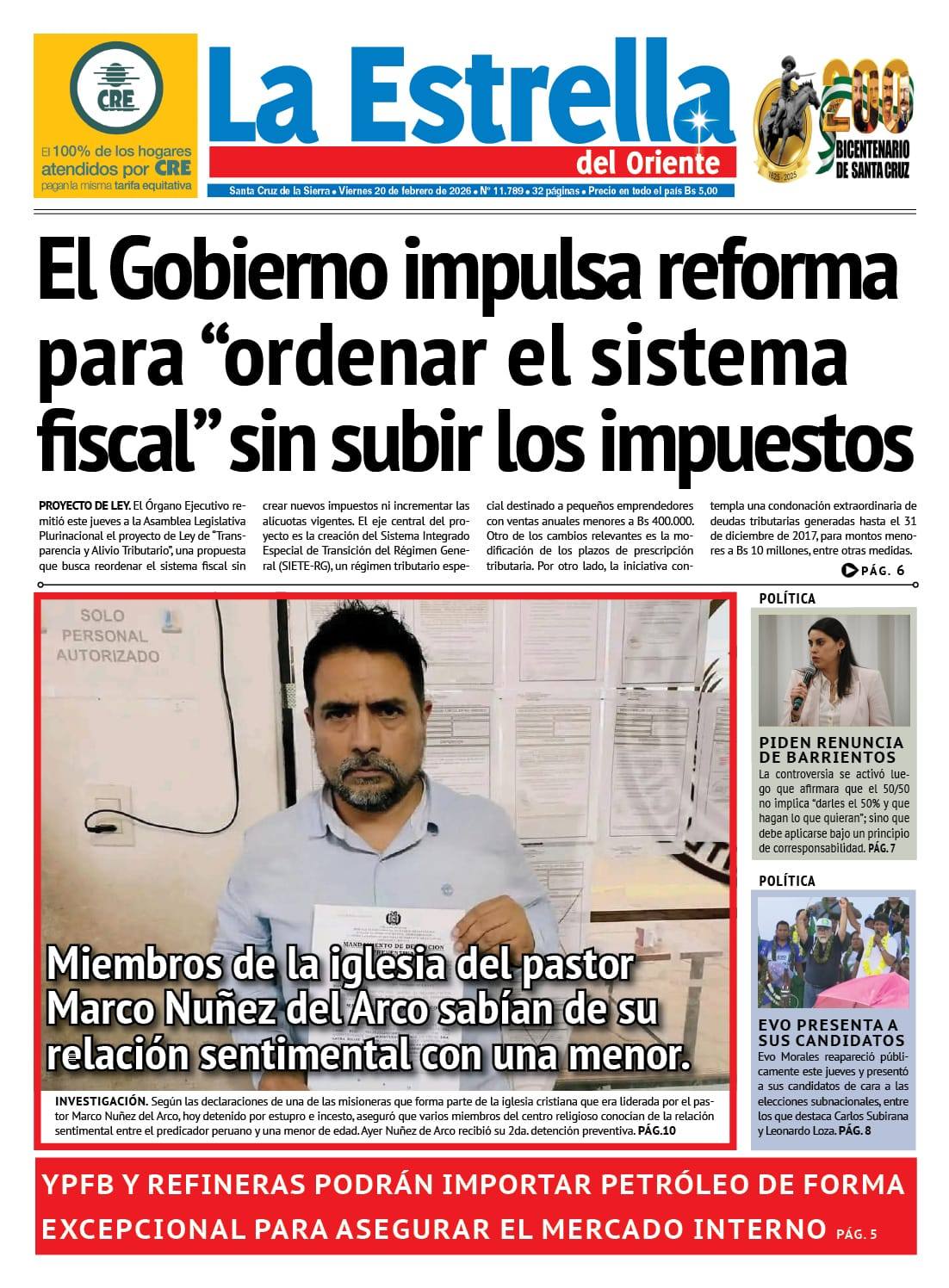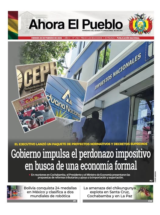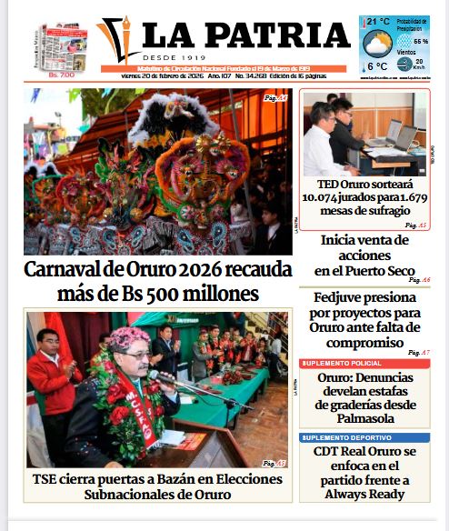 Portadas de los periódicos de Bolivia del viernes 20 de febrero del 2026