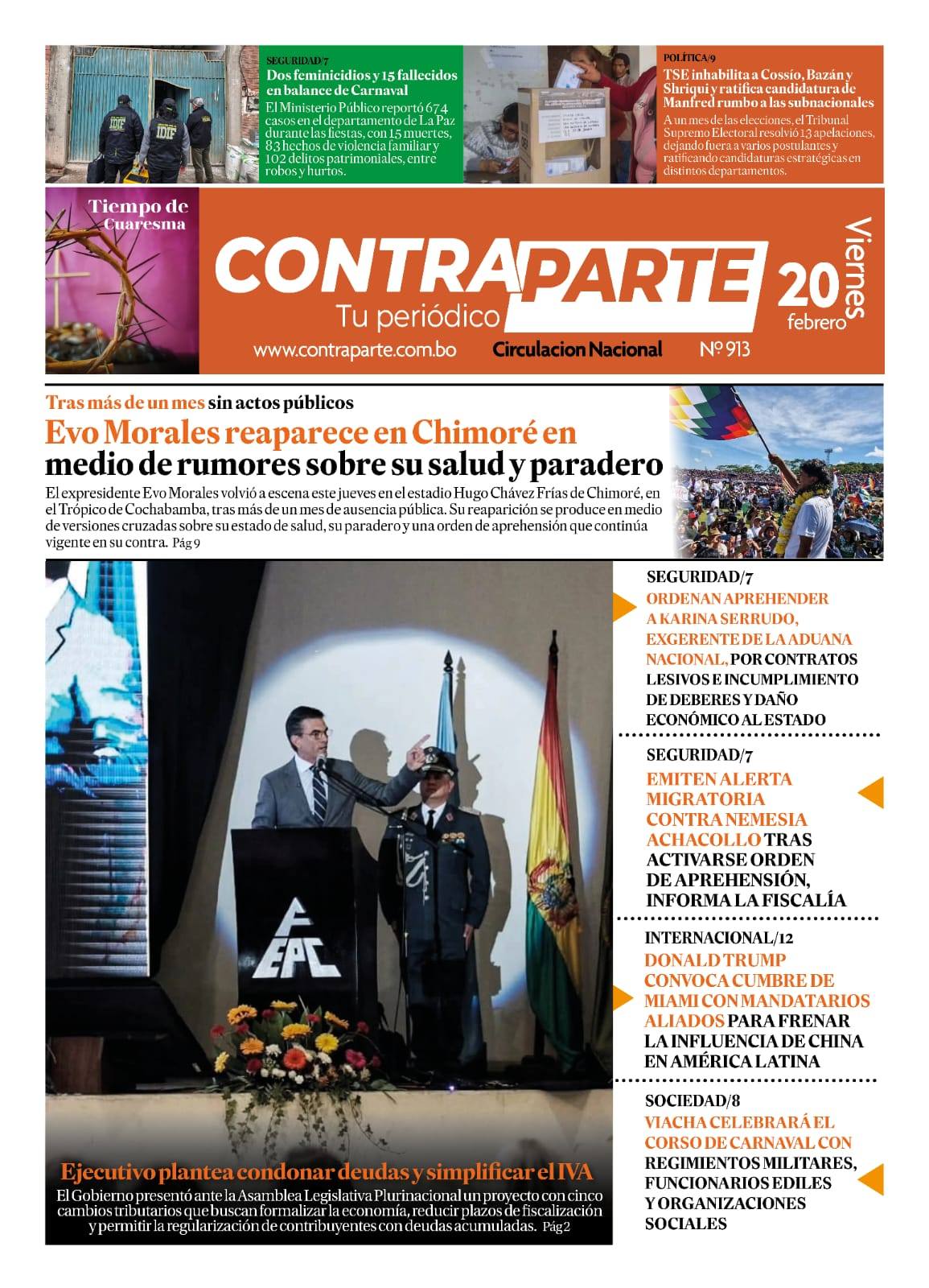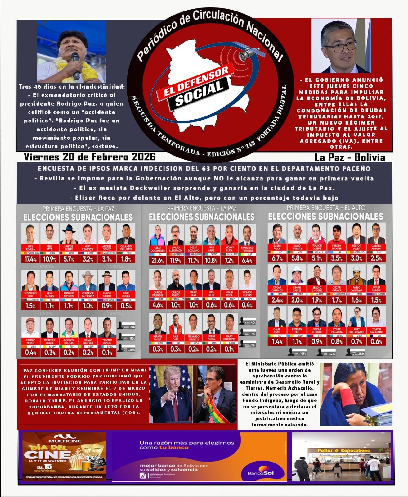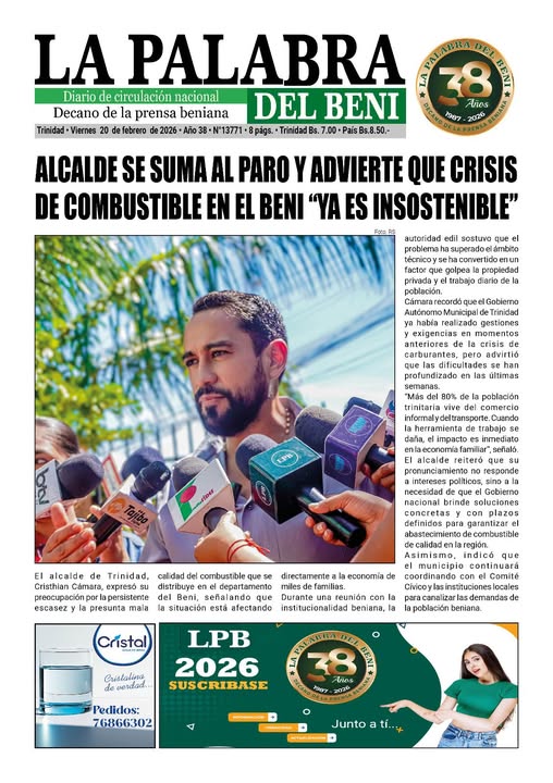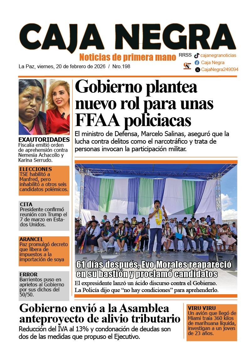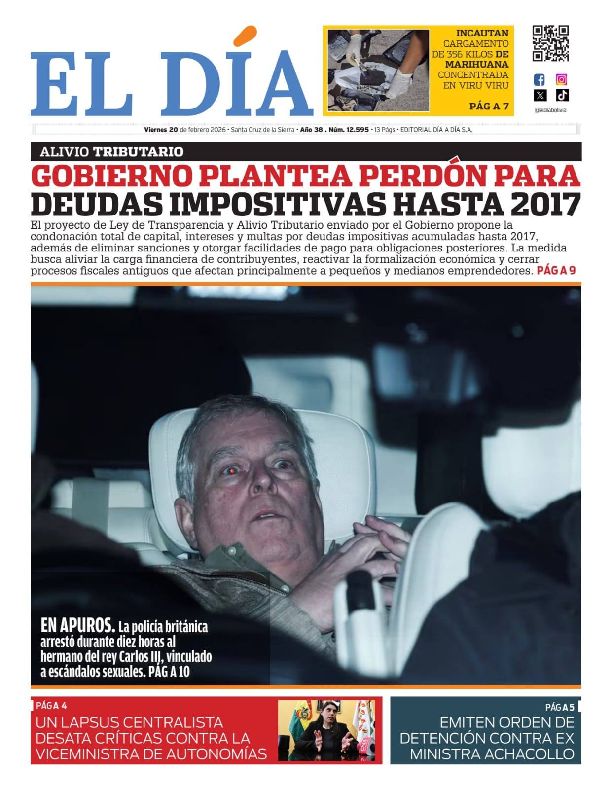 Portadas de los periódicos de Bolivia del viernes 20 de febrero del 2026
