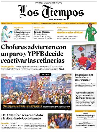 Fuente: El Deber, El Día, Zona Norte, La Palabra, La Razón, El Alteño, La Prensa, Ahora El Pueblo, La Estrella del Oriente, El Mundo, Los Tiempos, La Voz, Contraparte, Andaluz, El Potosí, Correo del Sur, El País, El Periódico, El Diario, Amitel Pres, Opinión, Caja Negra, Novavox.