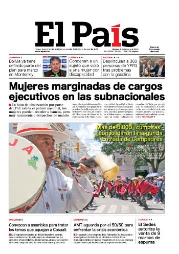 Fuente: El Deber, El Día, Zona Norte, La Palabra, La Razón, El Alteño, La Prensa, Ahora El Pueblo, La Estrella del Oriente, El Mundo, Los Tiempos, La Voz, Contraparte, Andaluz, El Potosí, Correo del Sur, El País, El Periódico, El Diario, Amitel Pres, Opinión, Caja Negra, Novavox.