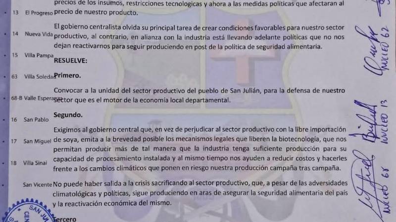 “No puede haber salida a la crisis sacrificando al sector productivo, que, a pesar de las adversidades climatológicas y políticas, sigue produciendo en aras de asegurar la seguridad alimentaria del país y la reactivación económica del mismo”, indica el documento.