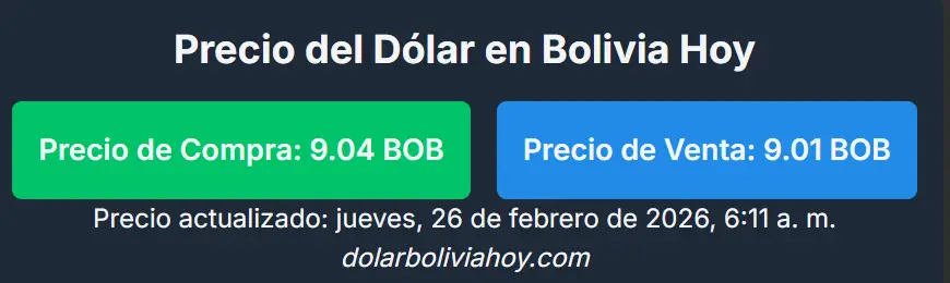 Según el sitio dolarboliviahoy.com, la moneda estadounidense se cotiza en Bs 9,04 para la compra y Bs 9,01 para la venta, lo que refleja un ajuste mínimo frente al reporte anterior.