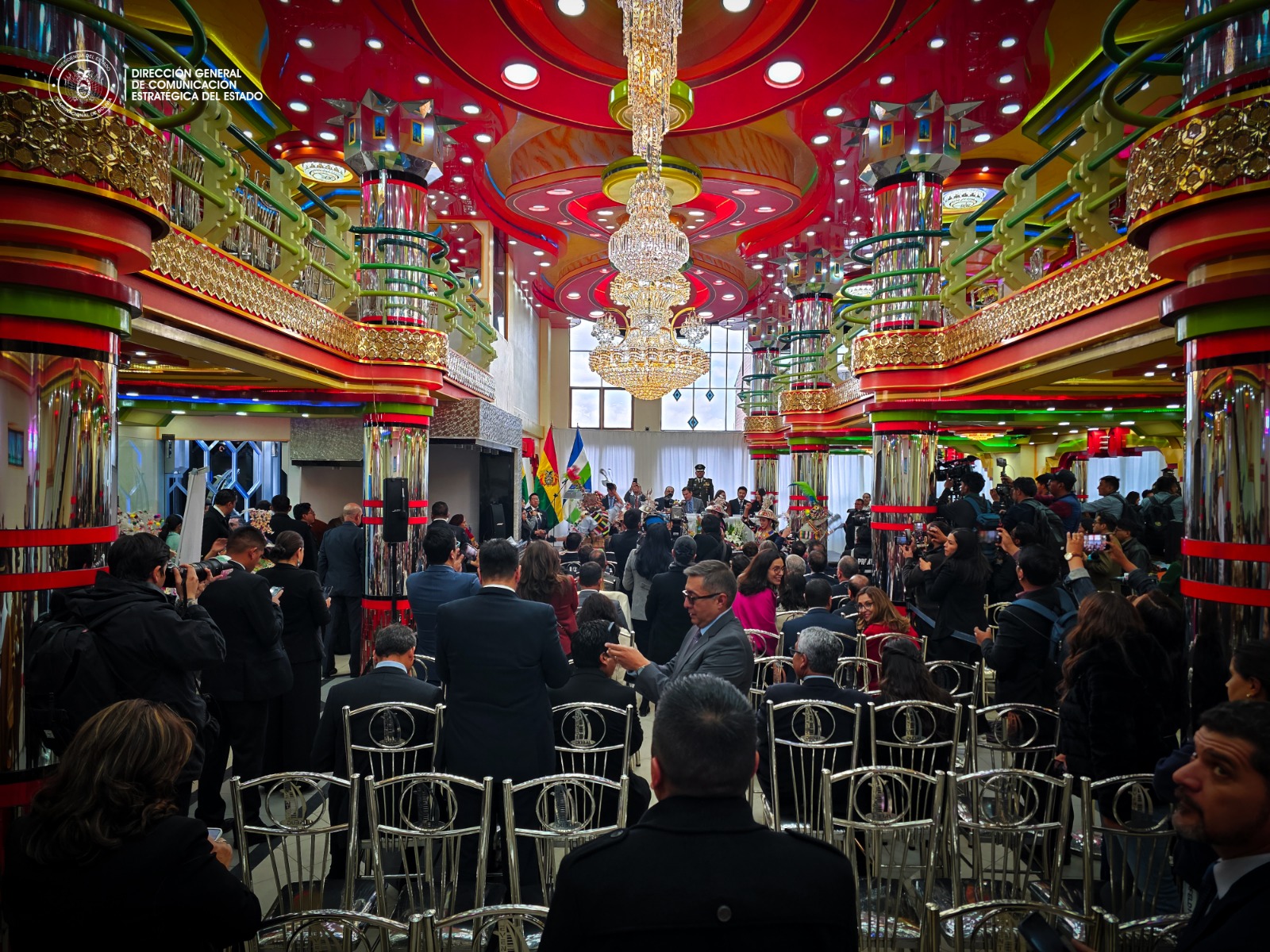 Díaz-Granados y Paz, luego del acto especial en Palacio Quemado, donde entregó la Estrategia País; se trasladaron en comitiva a la ciudad de El Alto, para realizar una visita al cholet ‘Crucero de Los Andes’, donde el ejecutivo del organismo internacional pudo admirar el estilo arquitectónico que se fusiona con colores vibrantes, formas audaces y con una marcada influencia de la cultura tiwanakota.