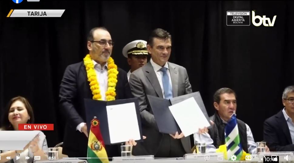 El presidente Rodrigo Paz Pereira y el titular del Banco de Desarrollo de América Latina y el Caribe (CAF), Sergio Díaz-Granados, suscribieron el contrato para la construcción de colectores, emisario y la Planta de Tratamiento de Aguas Residuales (PTAR) Cabeza de Toro, en el departamento de Tarija, un proyecto estratégico orientado a fortalecer el saneamiento básico y la protección ambiental en la región.