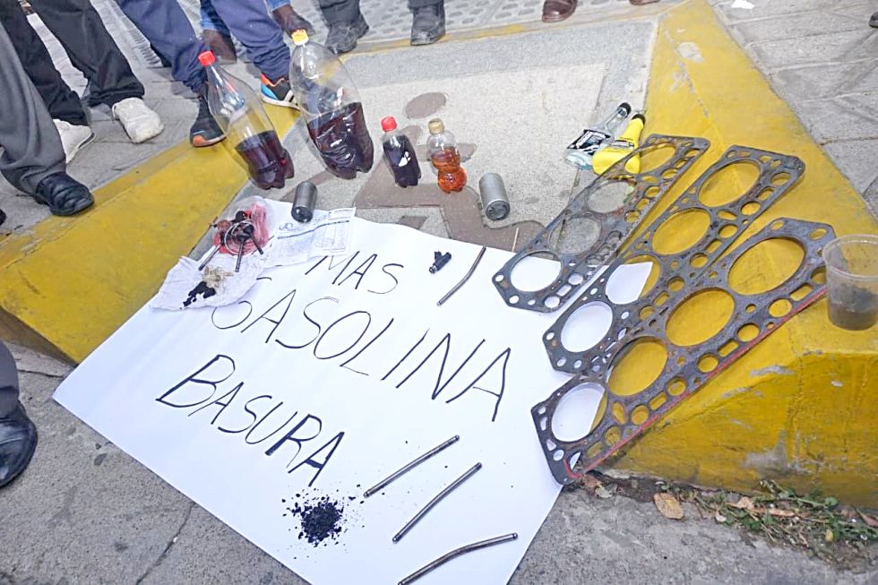 Los choferes protestan por la calidad del combustible que vende YPFB. Foto: APG