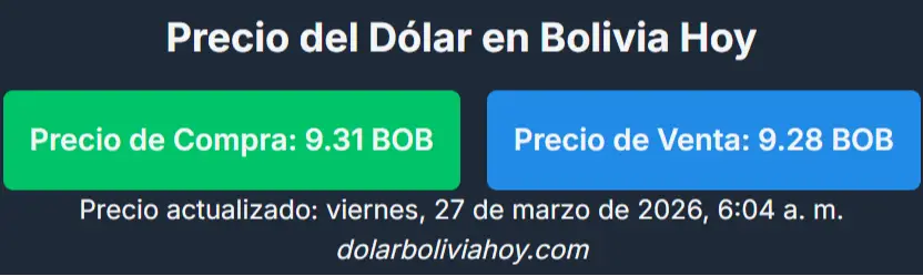 El jueves, ese mismo sitio reportaba Bs 9,31 para la compra y Bs 9,29 para la venta. La actualización muestra una leve baja en la venta, mientras la compra se mantiene estable.