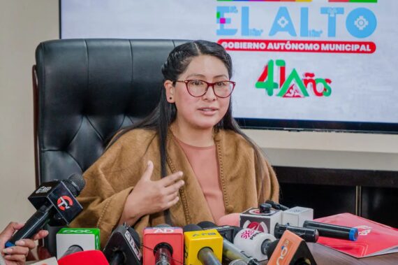 La alcaldesa alteña, Eva Copa, en rueda de prensa. Foto: GAMEA