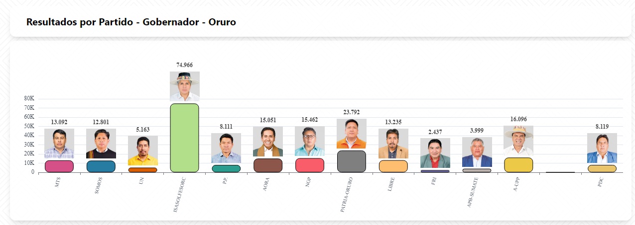Con estos resultados, Jach’a – Jakisa – Sol – Fesorc y Alianza Patria – Oruro irían a segunda vuelta el 19 de abril.