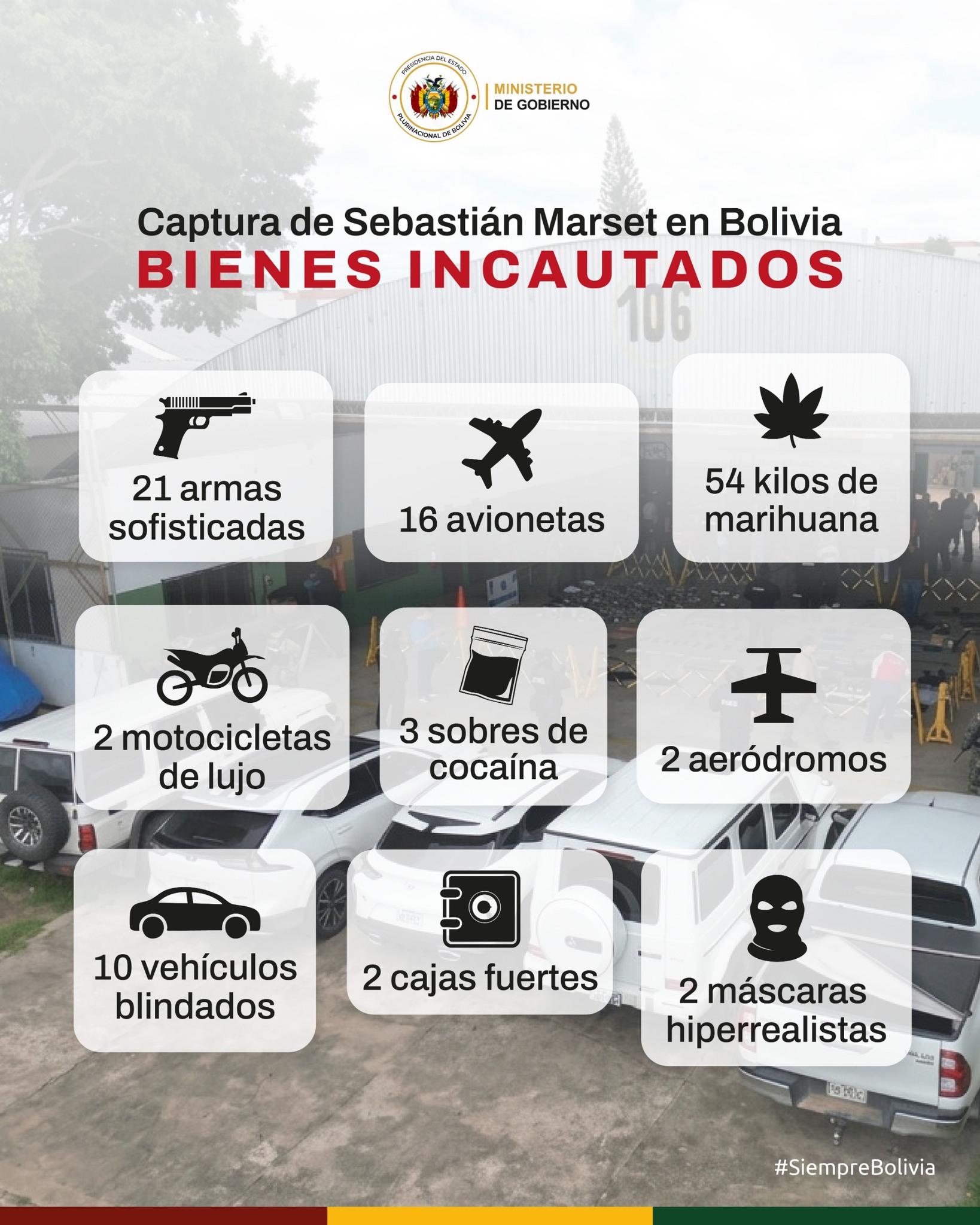 “Este accionar forma parte de las medidas institucionales orientadas a garantizar la adecuada custodia y administración de los bienes incautados en la lucha frontal contra el narcotráfico y el crimen organizado”, subrayó el Ministerio de Gobierno en un comunicado.