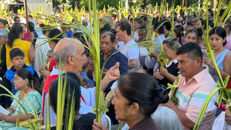 En Santa Cruz, desde tempranas horas de la mañana, católicos con palmas en las mano comenzaron a llegar hasta el centro cruceño para escuchar la tradicional misa por el Domingo de Ramos, celebrada por el monseñor René Leigue que inició al promediar las 07:00.