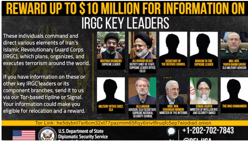 El Departamento de Estado fijó la recompensa en hasta 10 millones de dólares e indicó que la información podría hacer que las personas sean elegibles para la reubicación.