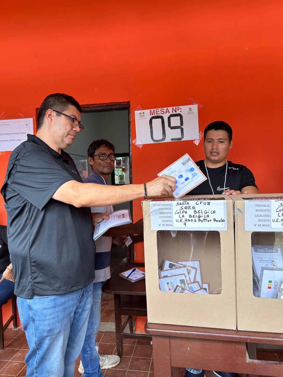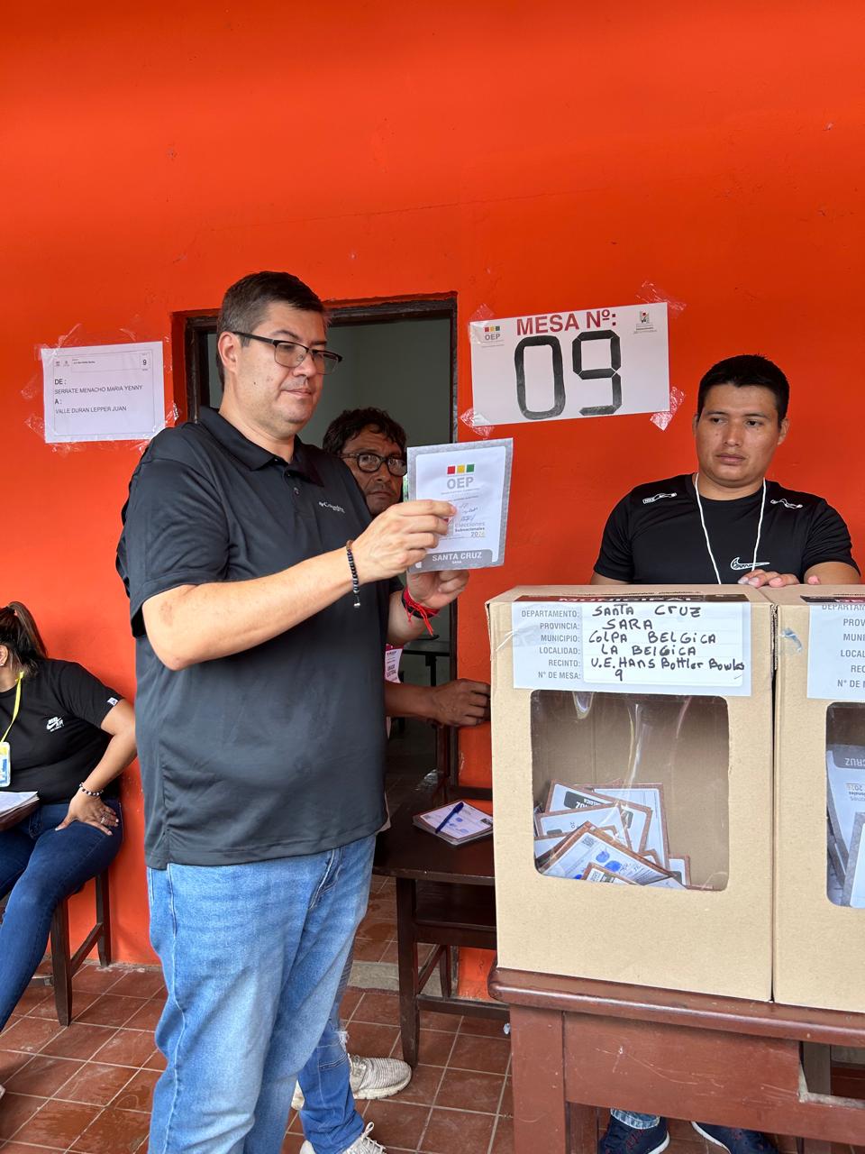 El candidato a la alcaldía de Colpa Bélgica por la agrupación Patria, Gonzalo Serrate Suárez, llegó esta mañana a su recinto electoral para emitir su voto. En su intervención, hizo un llamado a la población a cumplir con su deber cívico y a contribuir a que esta jornada se desarrolle en un ambiente de tranquilidad y respeto.