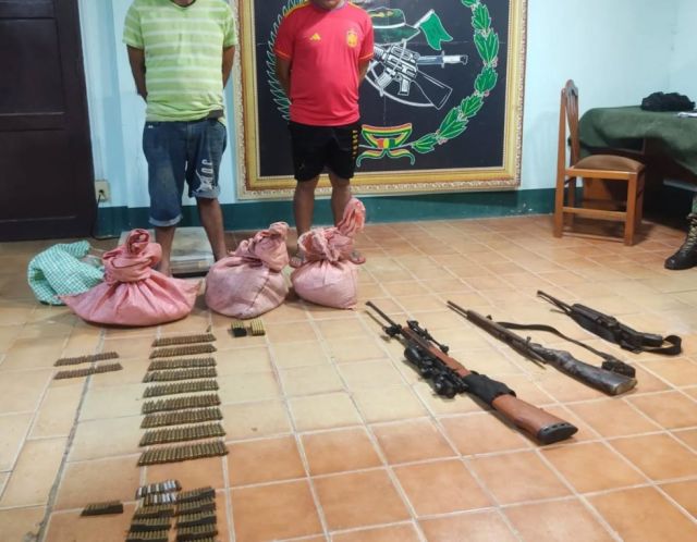 De acuerdo con el reporte, durante la solicitud se logró el secuestro de tres bolsas con pasta base de cocaína, además de armas de fuego y munición de distintos calibres. Asimismo, dos ciudadanos fueron aprehendidos y puestos a disposición del Ministerio Público.