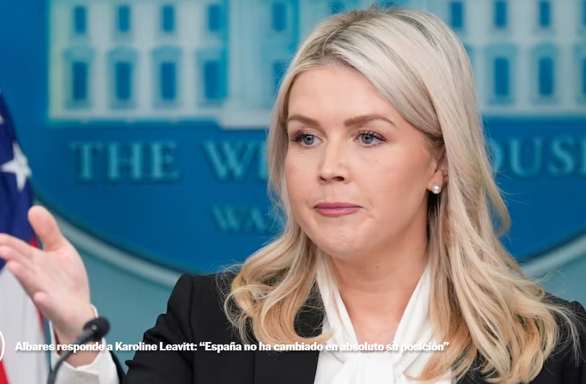 La portavoz de la Casa Blanca, Karoline Leavitt, compareció por primera vez ante la prensa este miércoles, quinto día de la guerra iniciada por Israel y Estados Unidos, para asegurar que España “se ha mostrado en las últimas horas de acuerdo en cooperar con el ejército estadounidense”. Ese cambio de idea, añadió, llega tras las amenazas de Donald Trump de represalias económicas por la negativa de Madrid a dejar que Washington emplee las bases de Morón y Rota para atacar a Irán.
