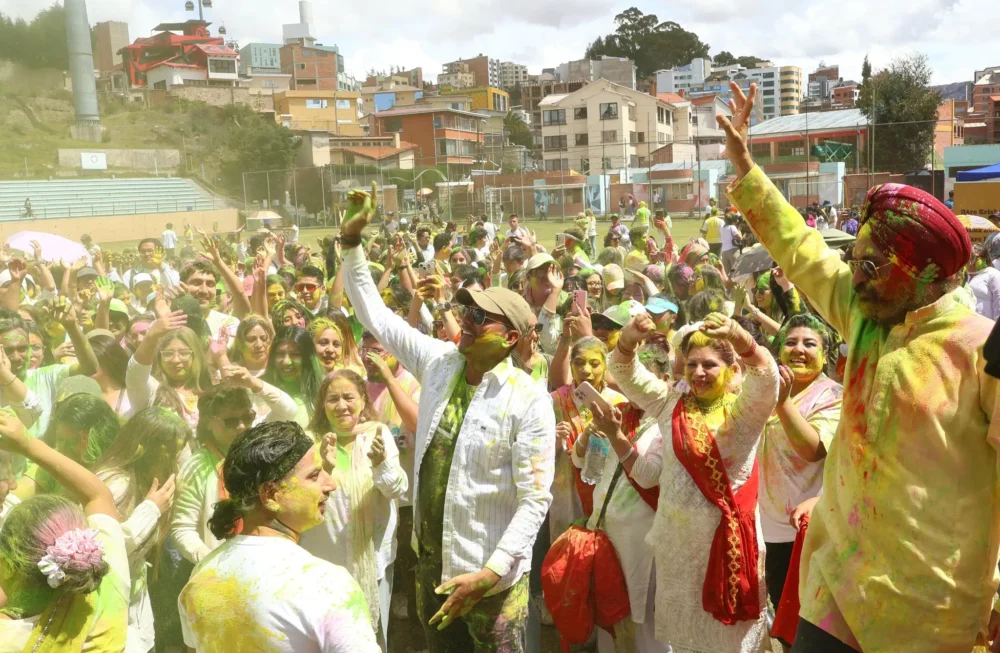 La Embajada de la India en Bolivia celebró este domingo el festival Holi en la ciudad de La Paz, en instalaciones del Estadio Luis Lastra, con la participación de más de 600 personas.