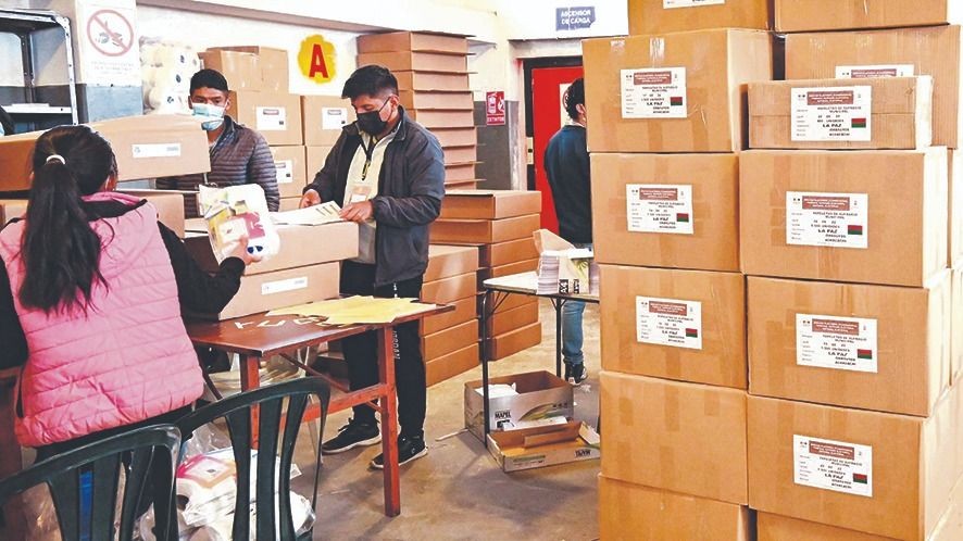 Maletas electorales. En los nueve tribunales electorales departamentales ya comenzó la distribución de las 33.439 maletas electorales para un número similar de mesas de sufragio.