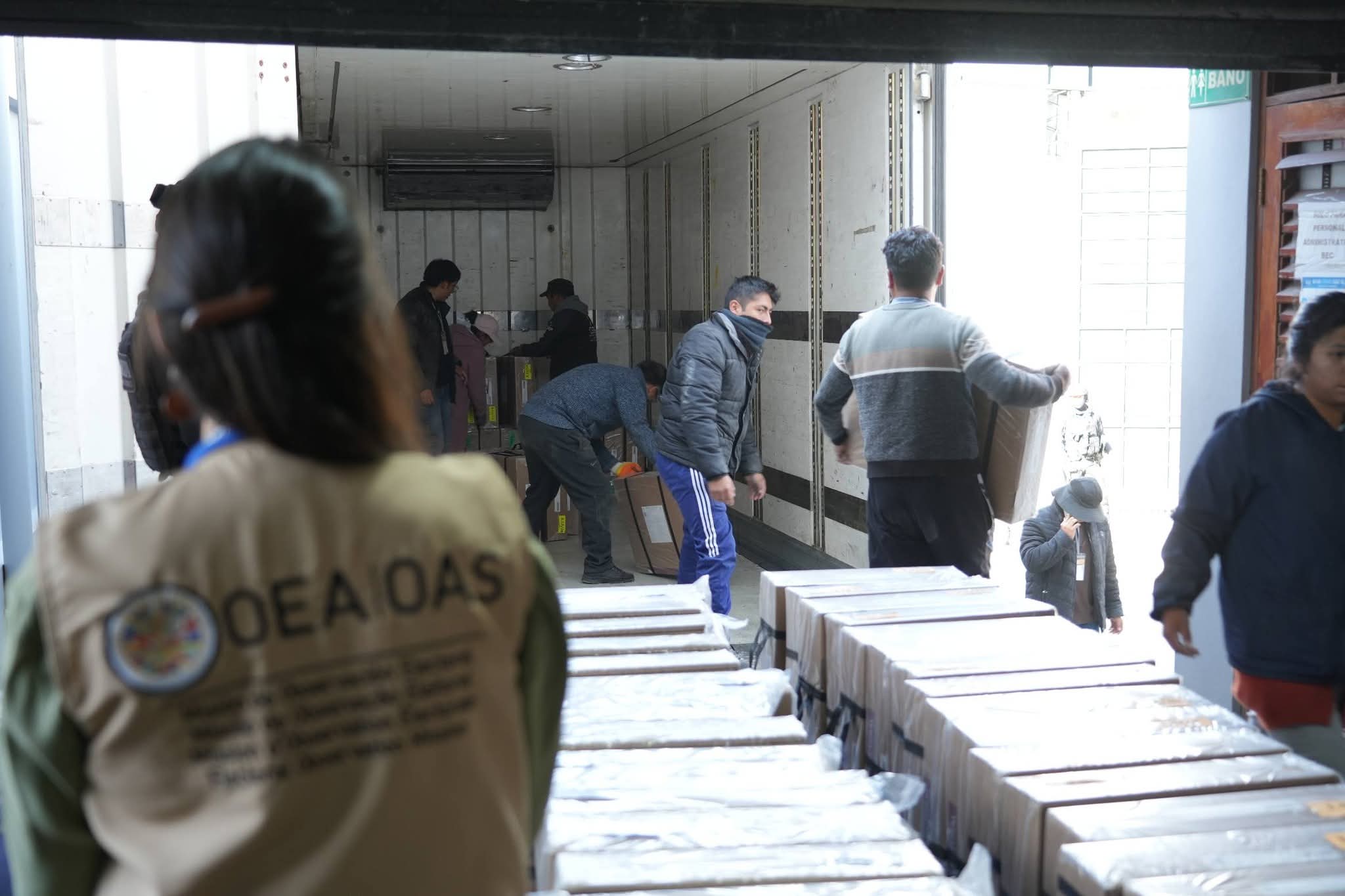 Liderados por Cindy Quesada, los integrantes de la Misión de Observación Electoral de la Organización de los Estados Americanos (MOE-OEA) acompañaron este sábado el operativo de distribución de las maletas electorales para las elecciones subnacionales de este domingo, en el Centro Logístico del Tribunal Electoral Departamental (TED) de La Paz.