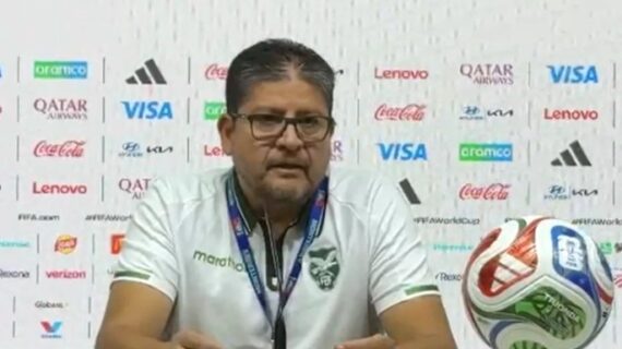 El seleccionador boliviano durante la conferencia. Foto: Captura,