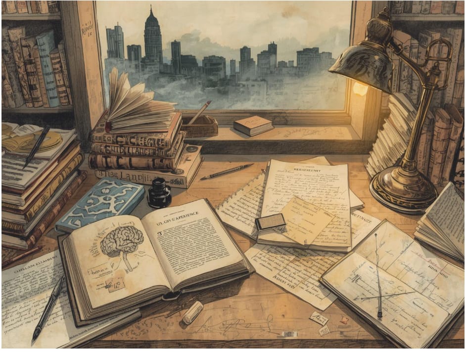 -La escritura externaliza el contenido mental. Pensamientos y resentimientos en modo automático se fijan en papel. La corteza prefrontal se reintegra. El proceso de inventario replica la técnica de la TCC para identificar cogniciones distorsionadas —las narrativas autoimpuestas, las creencias que impulsan conductas destructivas.