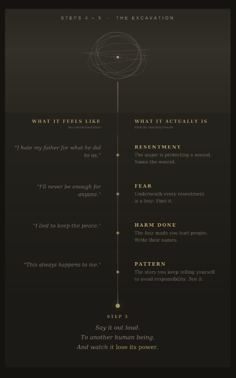 “Realizamos un minucioso e intrépido inventario moral… Admitimos ante Dios, ante nosotros mismos y ante otro ser humano la naturaleza exacta de nuestros defectos”.