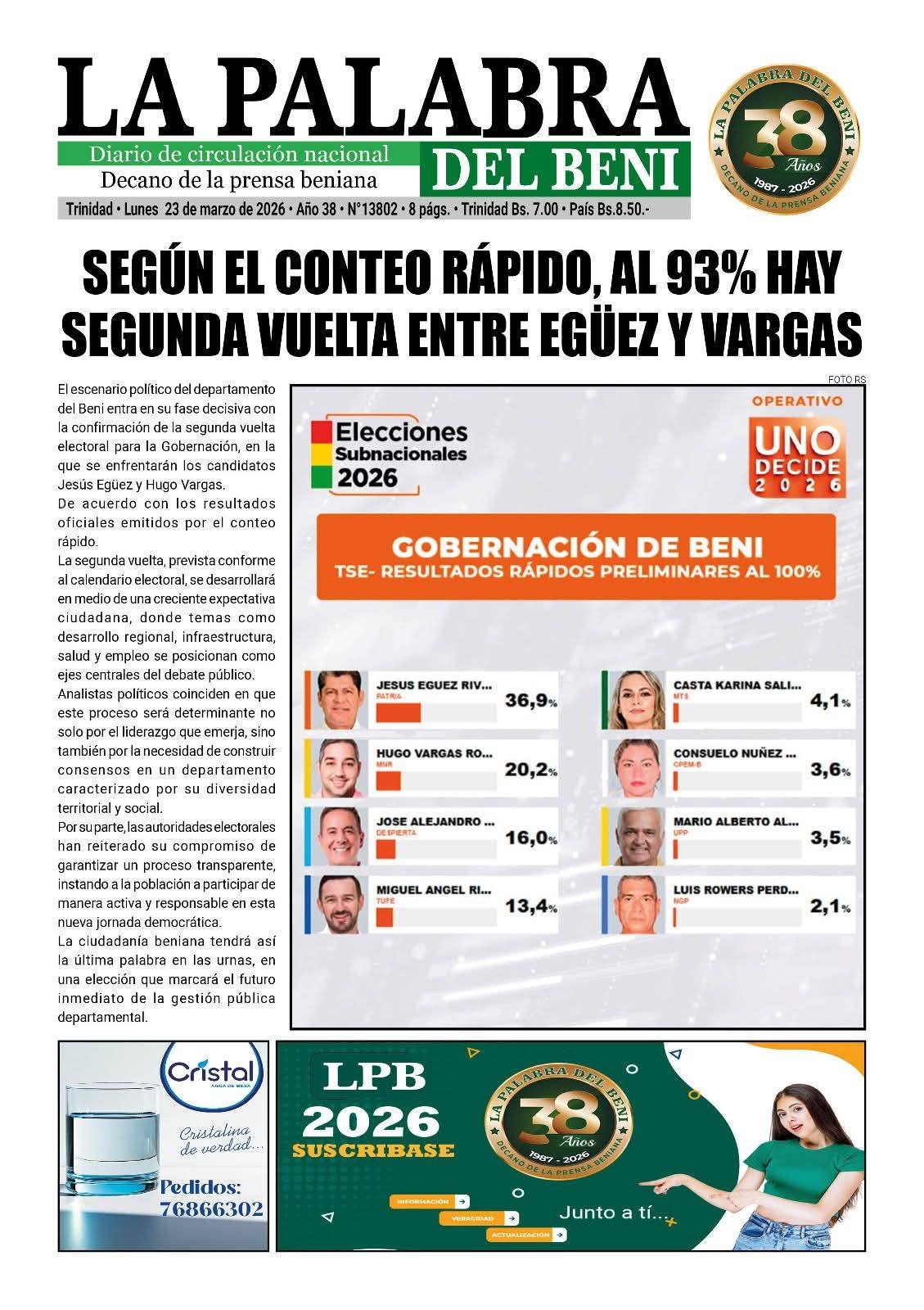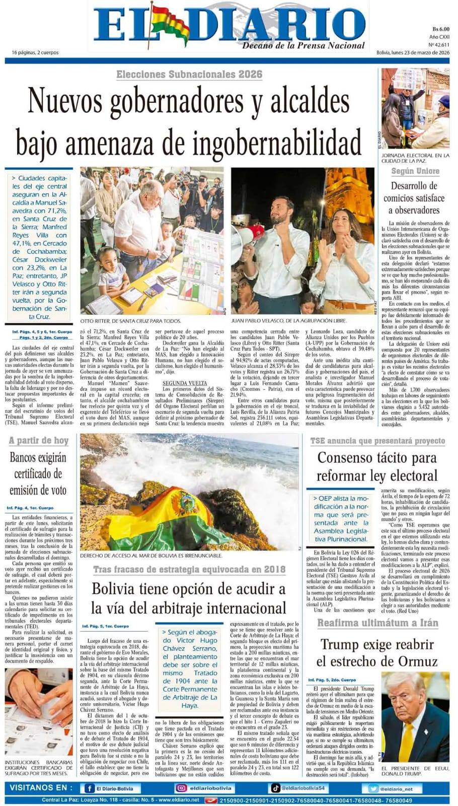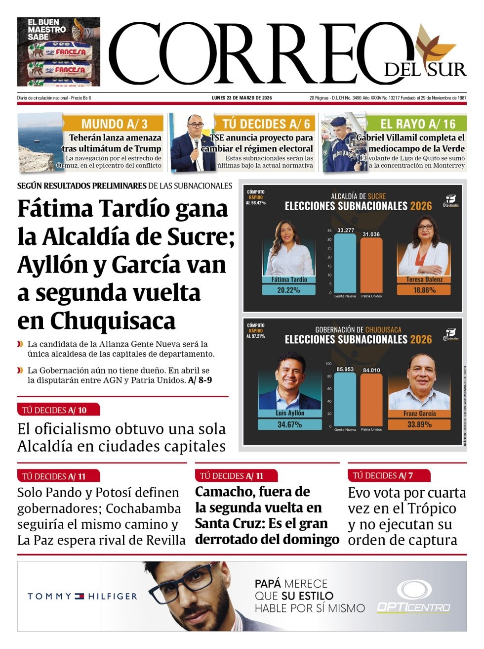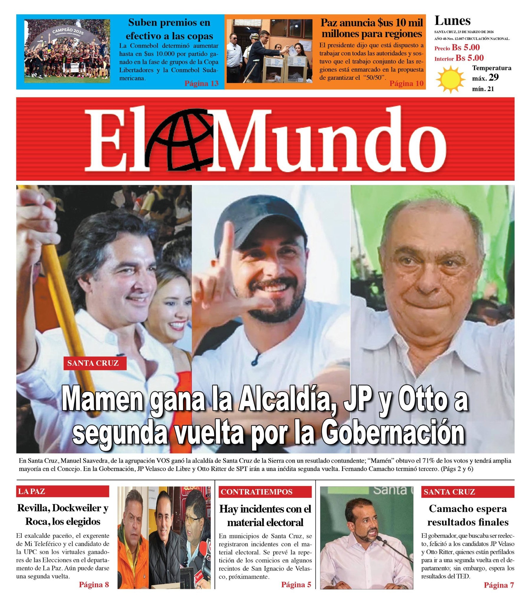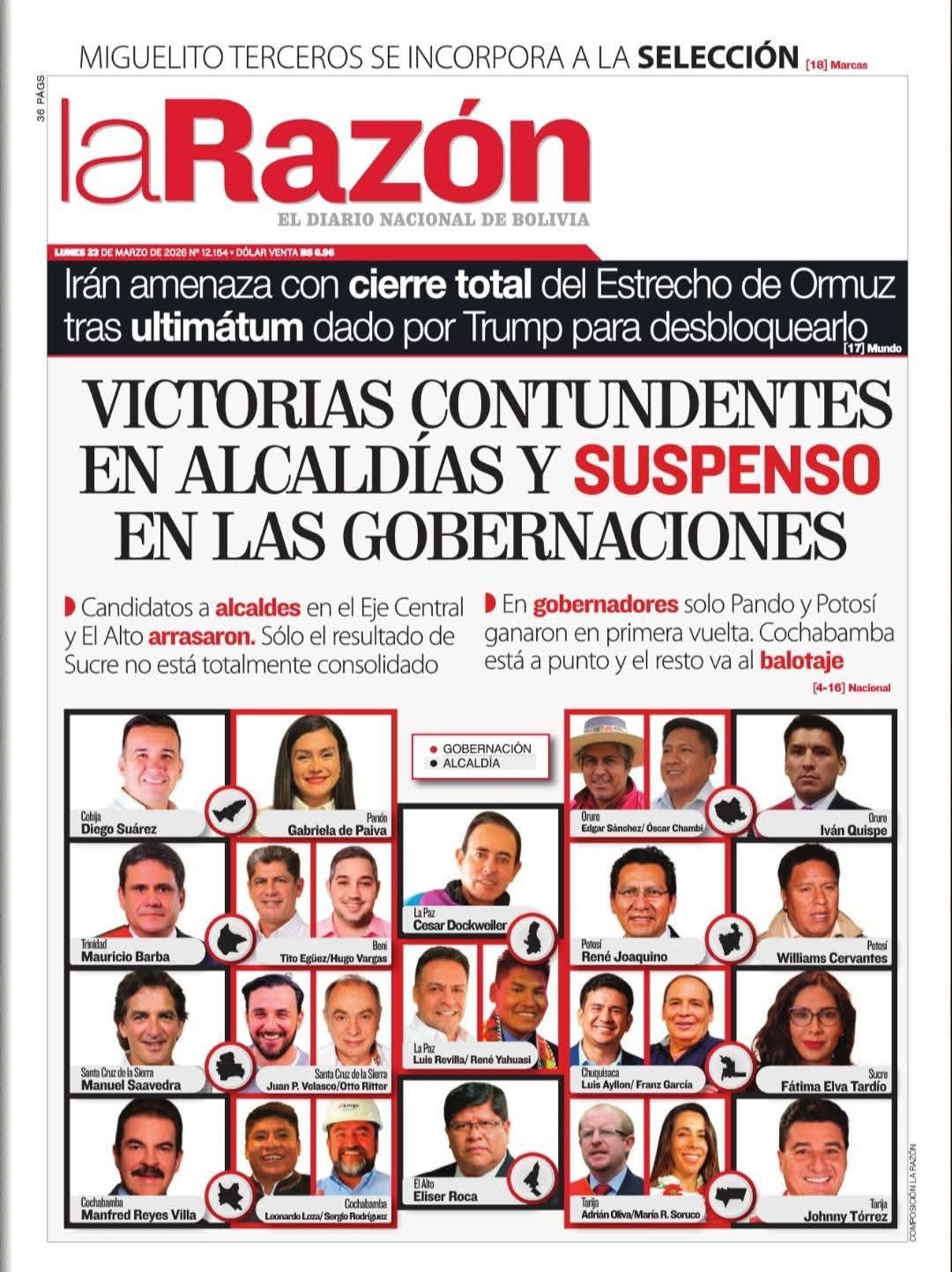 Fuente: El Deber, El Día, Zona Norte, La Palabra, La Razón, La Prensa, La Estrella del Oriente, El Mundo, Los Tiempos, La Voz, Contraparte, Andaluz, Correo del Sur, El País, El Periódico, El Diario, Amitel Pres, Opinión, Caja Negra, Novavox, La Patria.