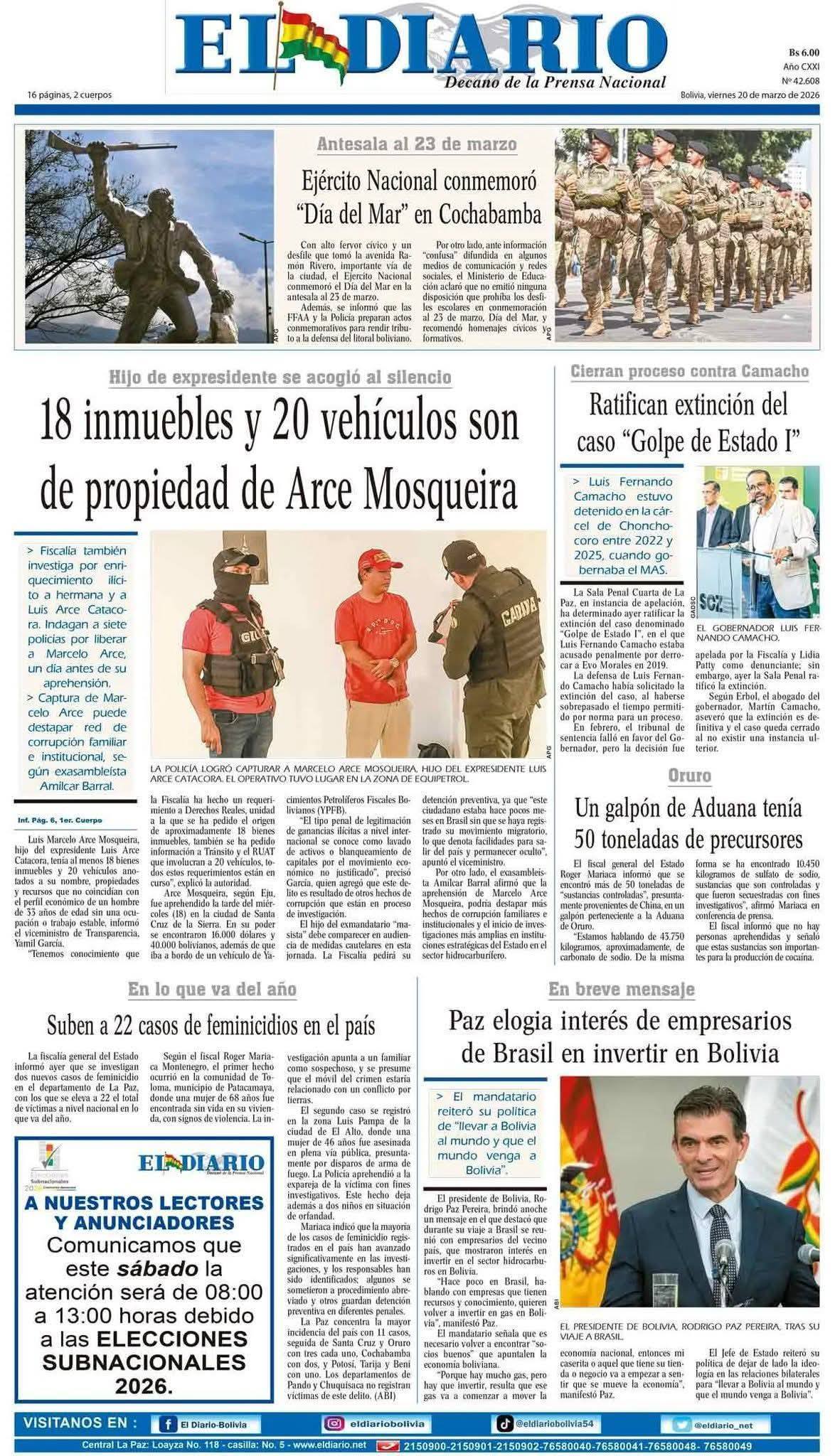 Fuente: El Deber, El Día, Zona Norte, La Palabra, La Razón, El Alteño, La Prensa, La Estrella del Oriente, El Mundo, Los Tiempos, La Voz, Contraparte, Andaluz, El Potosí, Correo del Sur, El País, El Periódico, El Diario, Amitel Pres, Opinión, Caja Negra, Novavox, La Patria.