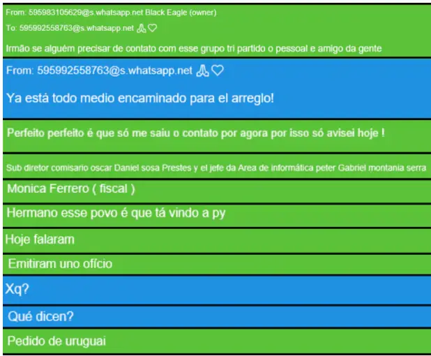 Parte del material extraído también reveló contactos directos entre Espíndola y el entonces ministro del Interior de Paraguay, Arnaldo Euclides Giuzzio Benítez.