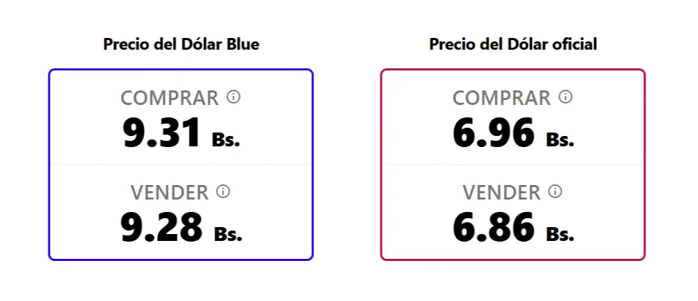 En su registro del cierre del martes, el portal señalaba Bs 9,30 para la compra y Bs 9,28 para la venta, lo que refleja un movimiento leve en la cotización.