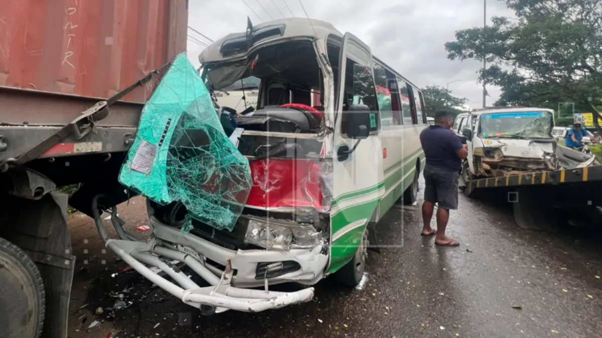 El hecho ocurrió cuando un micro que presta el servicio de transporte público hacia el municipio de El Torno impactó contra la parte trasera de un camión de alto tonelaje y un trufi que circulaban por el sector.
